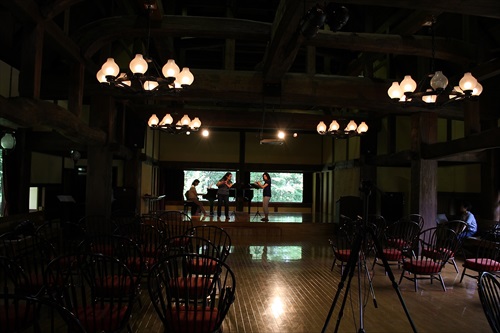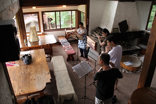 ホール(合掌館)ではピアノ伴奏合わせ指導、他の部屋(例年は宿泊する新館)でピアノ無しのアンサンブルの指導をします。初日は通し練習を行い、細かい指導は二日目からになります。プログラム順です。