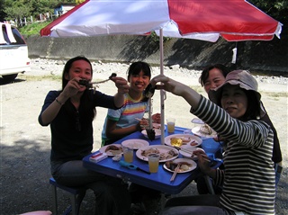 長坂手前で、蕎麦で合宿をしめる. |
