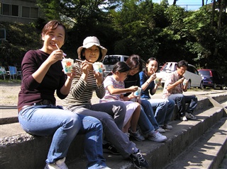 女性陣のお目当て、清泉寮のソフトクリーム. |