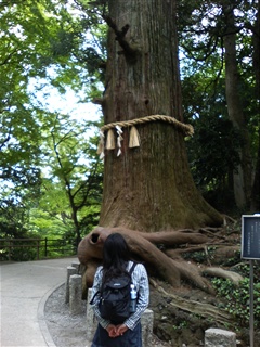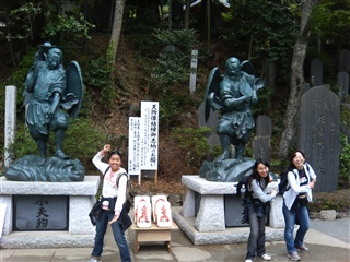薬王院入り口にある、天狗像の前で同じポーズ. |
