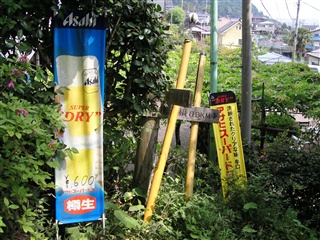 山を下りきったところにビールののぼりが. |