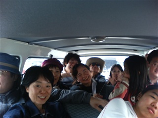 温泉の送迎バスは満員でぎゅーぎゅー. |