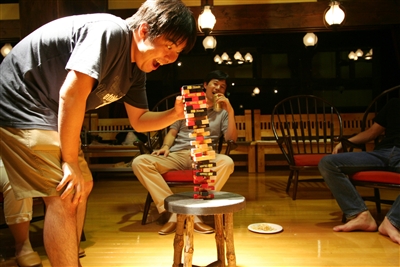合宿宴会の恒例になったジェンガー. |