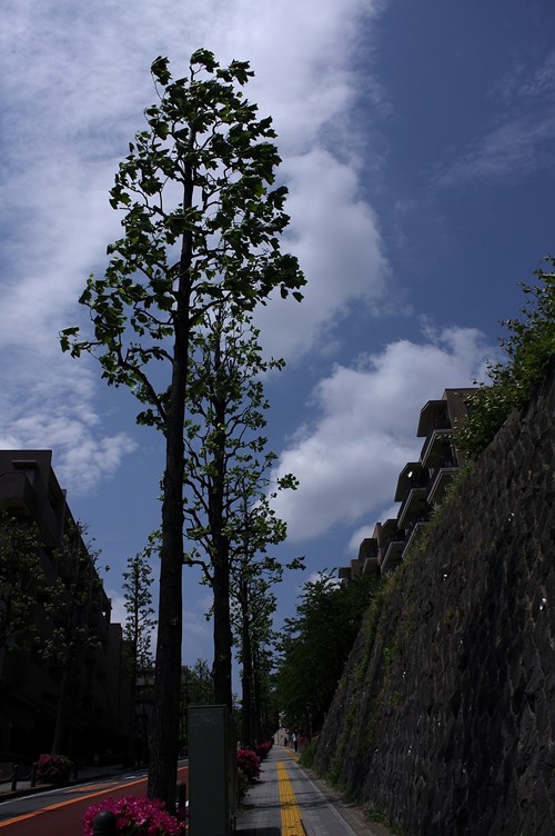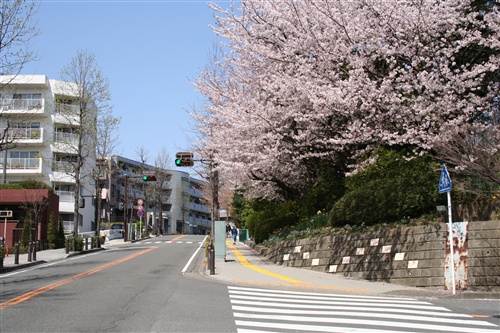 右折する道は「富士見坂」. ちょっと勾配があります. 上り始め道は左にカーブしています. (2011.5/9画像差し替えました) |