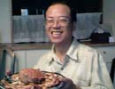 中野重孝さんです。試奏が無事済み、こちらはビールで乾杯です。この方、とても優しく親切なのでお客さんからの信望も厚いのです。新宿の村松に行ったら迷うことなく中野さんのご指名を。何でも相談にのってくれます。「上坂さんのホームページを見た」と言えば良いことがあるかも。無いか。