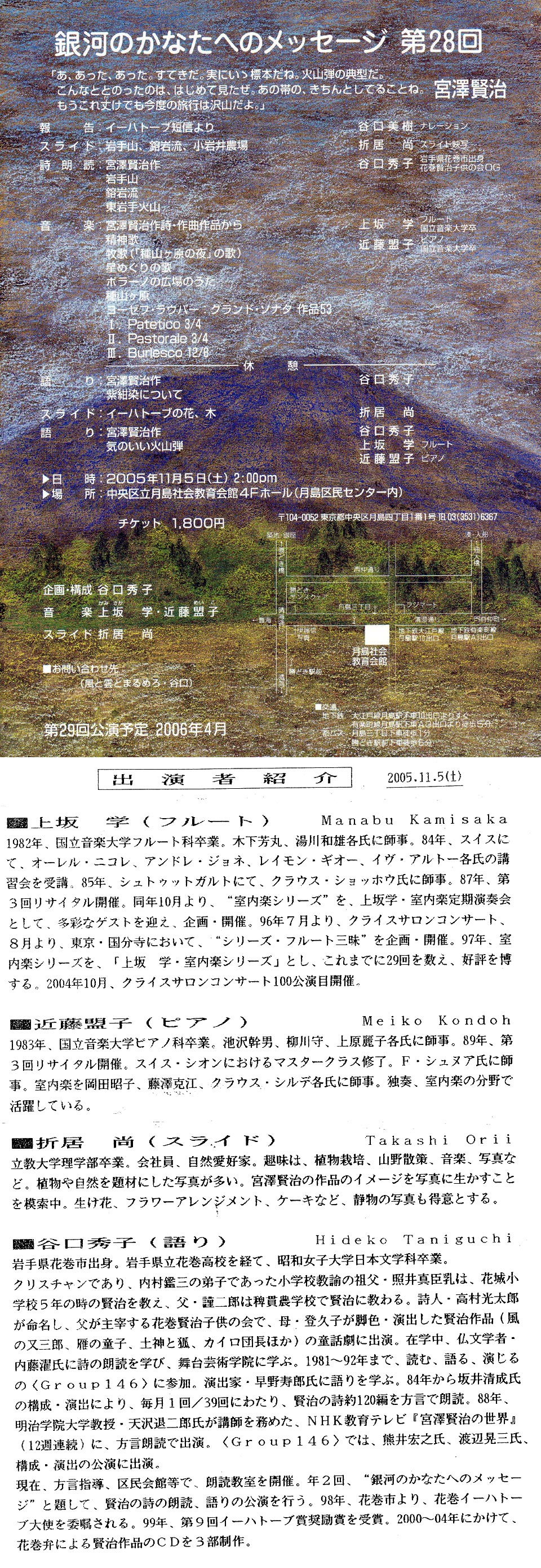 「銀河のかなたへのメッセージ 第28回」2005.11月5日(土)14:00☆下記画像をクリックすると拡大されます☆
